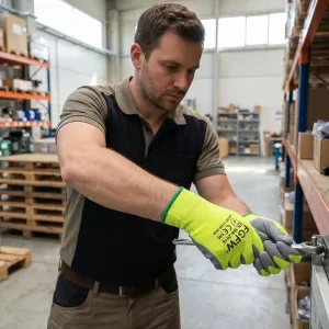 Ich benutze diese jeden Tag bei meiner Lagerarbeit. Die Handflächen greifen Kartons fest, der Sitz ist eng anliegend und die leuchtende Farbe hilft meinen Kollegen, Handzeichen zu erkennen.