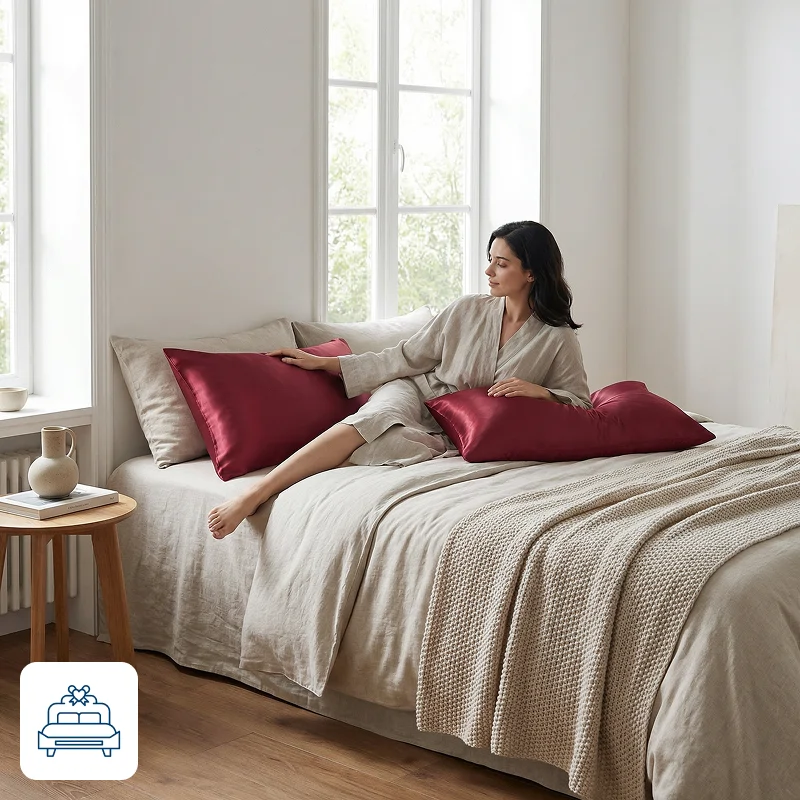 Ich habe jetzt morgens weniger Falten im Gesicht. Der seidige Bezug ist so gemütlich und sieht auch noch hübsch aus!