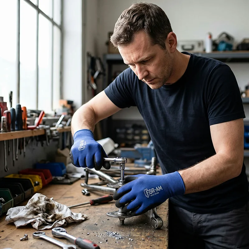 Ich benutze sie beim Reparieren von Fahrrädern in meinem Schuppen. Fett und Öl lassen die Werkzeuge nicht aus meinen Händen rutschen. Das flexible Material ermöglicht es mir, problemlos an winzigen Schrauben zu arbeiten.
