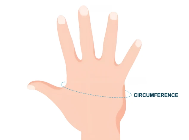 - 1. Wickeln Sie das Maßband um Ihre Handfläche, direkt unterhalb der Knöchel.