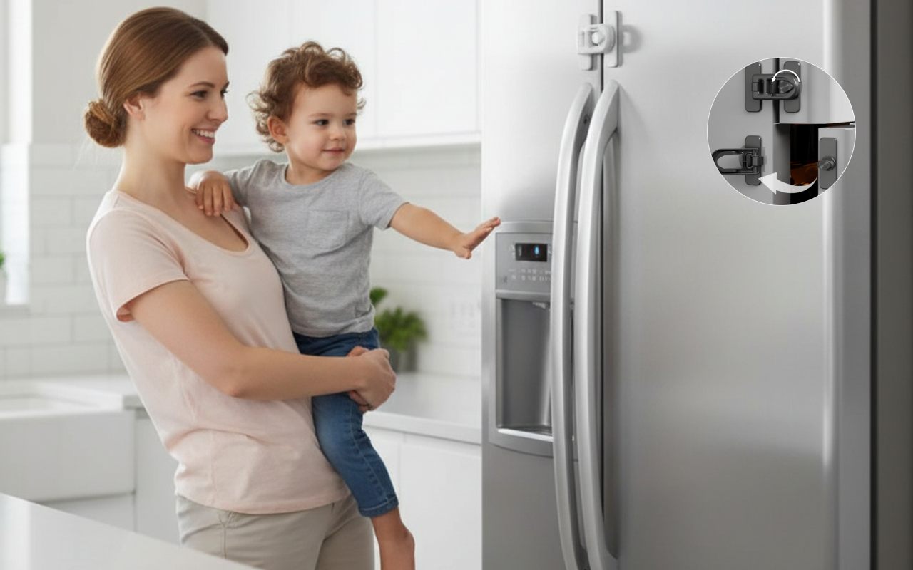 Unsere Zwillinge haben sich früher nachts heimlich Eis geholt. Seit wir dieses Schloss angebracht haben, bleibt der Kühlschrank zu und die Snacks halten länger. Super einfache Drehöffnung für Erwachsene.