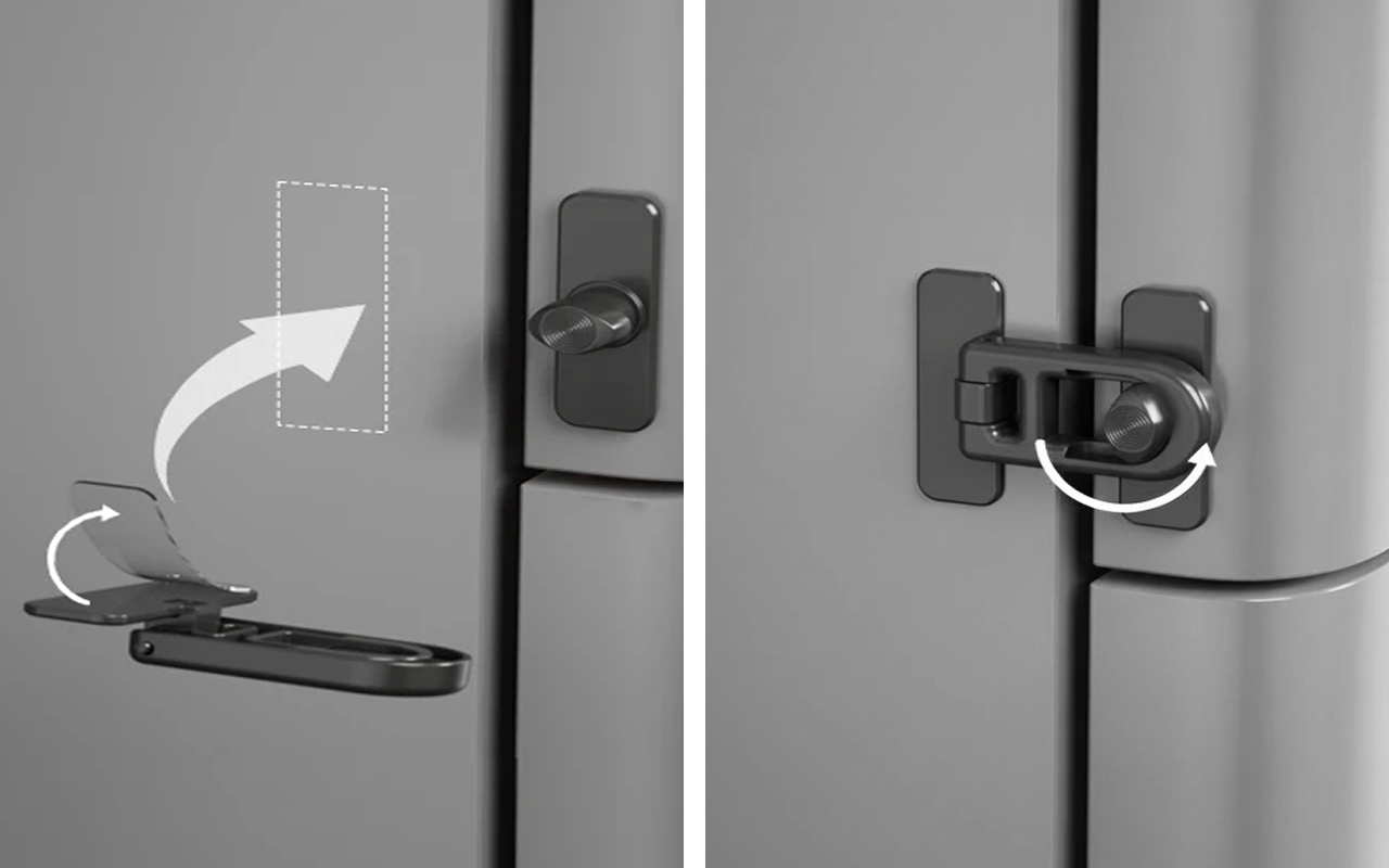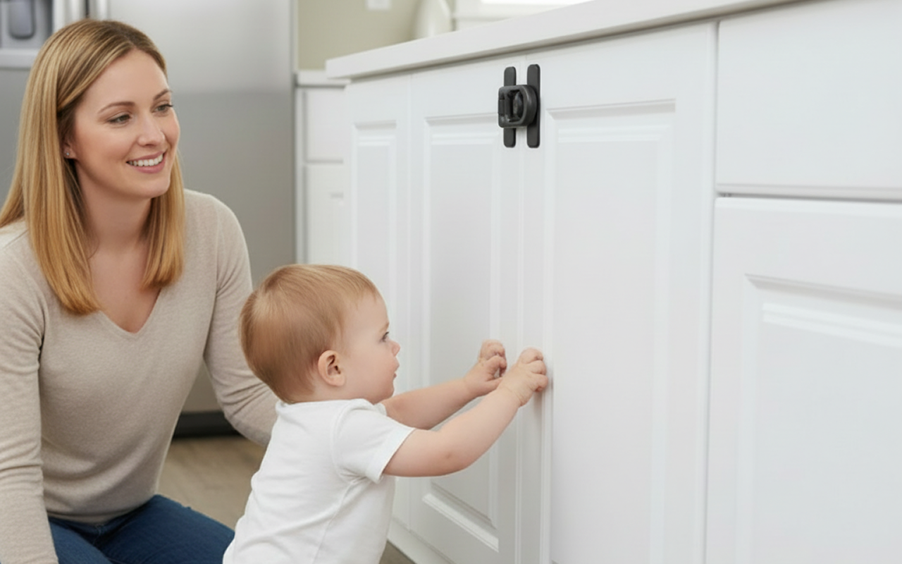 Erwachsene entriegeln in Sekundenschnelle mit einer einfachen Drehbewegung. Kinder können ihn nicht öffnen, sodass alles sicher bleibt.