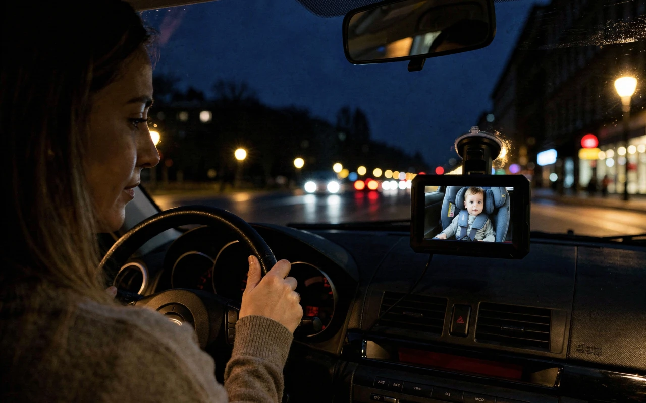 Die Installation der Babykamera hat überhaupt keine Zeit gekostet. Ich kann sie jederzeit anpassen, sogar wenn ich an einer Ampel halte. Die Nachtsicht ist genial!
