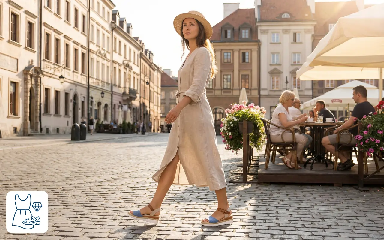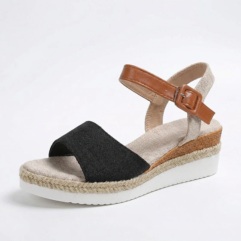 Diese bequemen Keilsandalen geben mir etwas zusätzliche Höhe und fühlen sich trotzdem stabil an, wenn ich Besorgungen mache und in der Schlange im Supermarkt stehe.