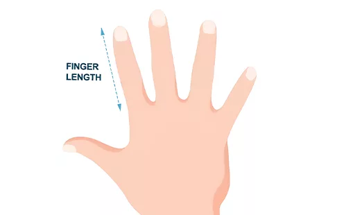 - 1. Verwenden Sie ein Lineal, um den Abstand von der Fingerbasis, wo er auf die Handfläche trifft, bis zur Fingerspitze zu messen.