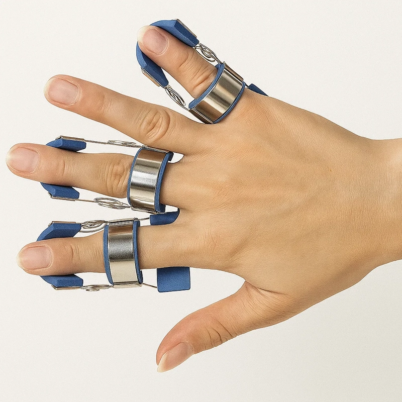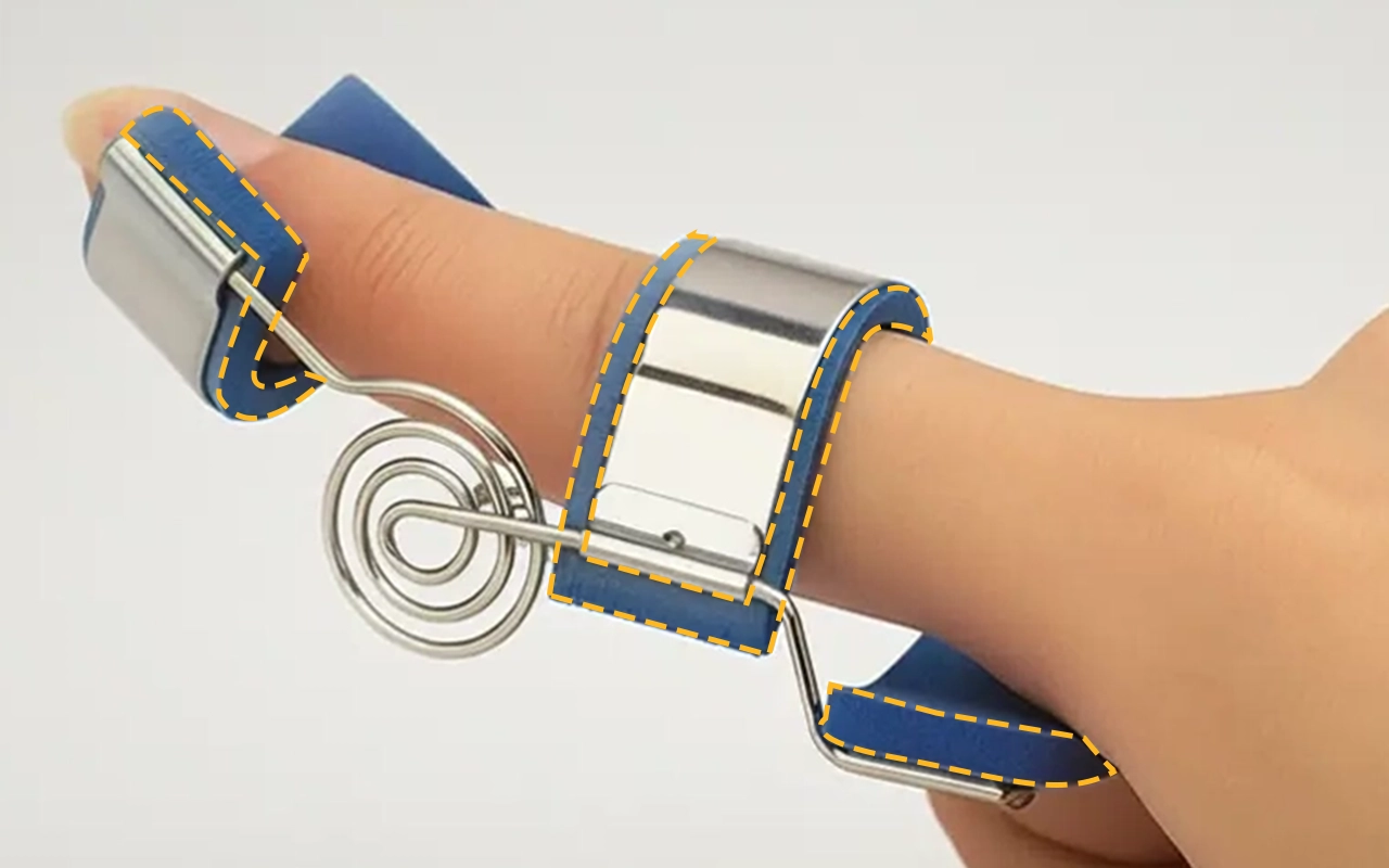Ich benutze sie an meinem Ringfinger im Schlaf, damit er sich nicht einrollt. Die Federstütze lässt ihn sich sanft dehnen, und ich wache mit weniger Steifheit auf.