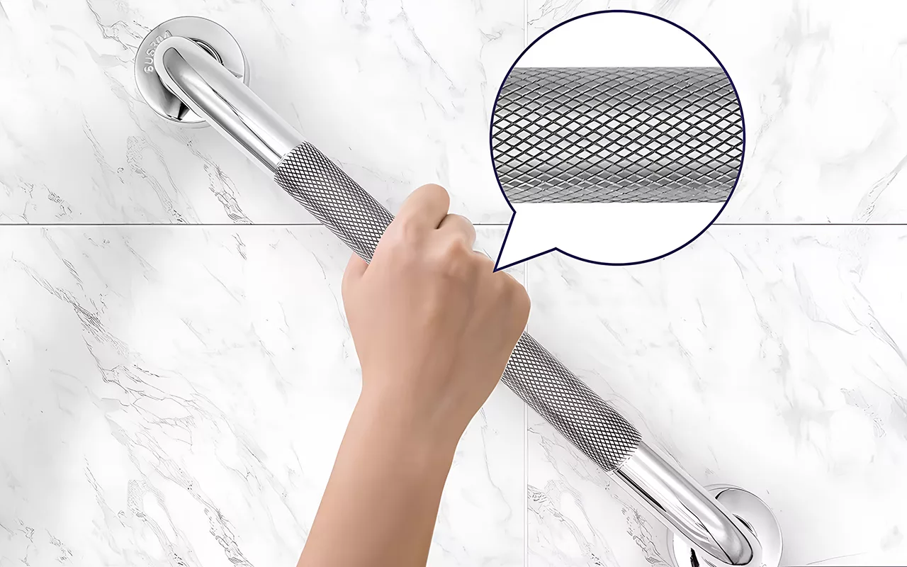 Ich benutze die Stange beim Aussteigen aus der Badewanne und sie rutscht nie aus meiner Hand. Der Antirutschbereich funktioniert wirklich gut.
