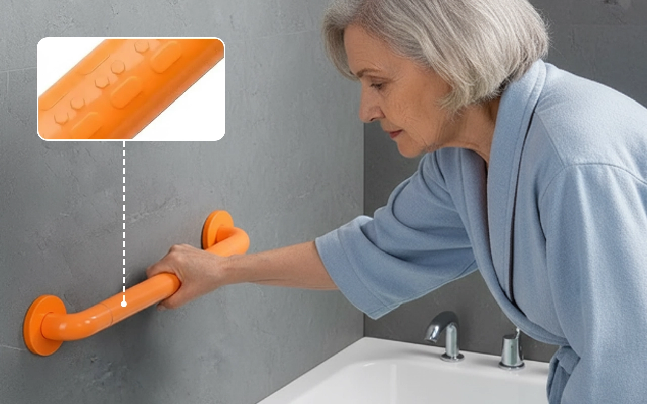 Habe diesen Griff gekauft, als mein Sohn sich das Bein gebrochen hat. Der Griff hilft ihm, sich zu stabilisieren und er fühlt sich viel sicherer, wenn er ins Bad geht.
