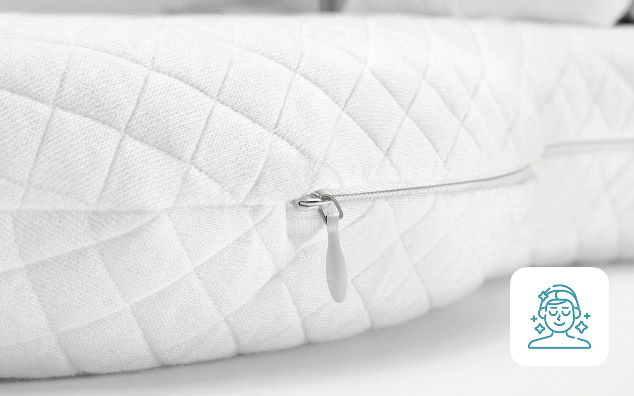 Der abnehmbare Bezug erleichtert die Reinigung. Atmungsaktive Materialien halten Sie kühl und frisch.