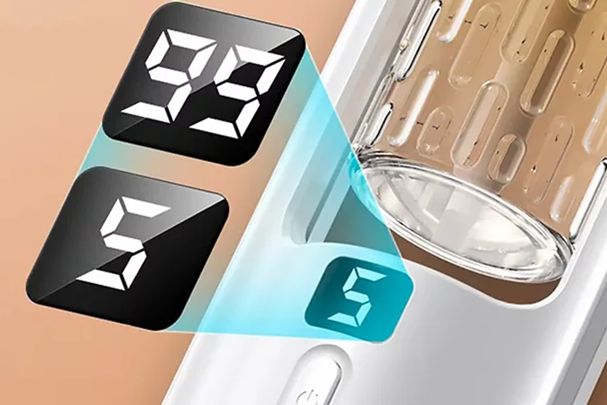 Das digitale Display zeigt den aktuellen Betriebsmodus und den Batteriestand an.