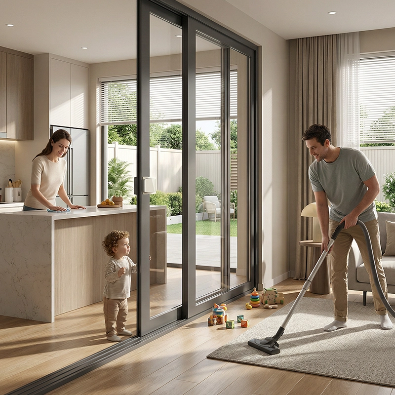 Kinder sind überall geschützt, wo sie drinnen spielen. Blockiert riskante Öffnungen an Schiebetüren oder Fenstern ganz einfach.