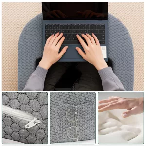Ich benutze das jeden Tag zum Arbeiten am Laptop. Meine Haltung ist viel besser und die Seitentaschen halten meine Stifte und Snacks!