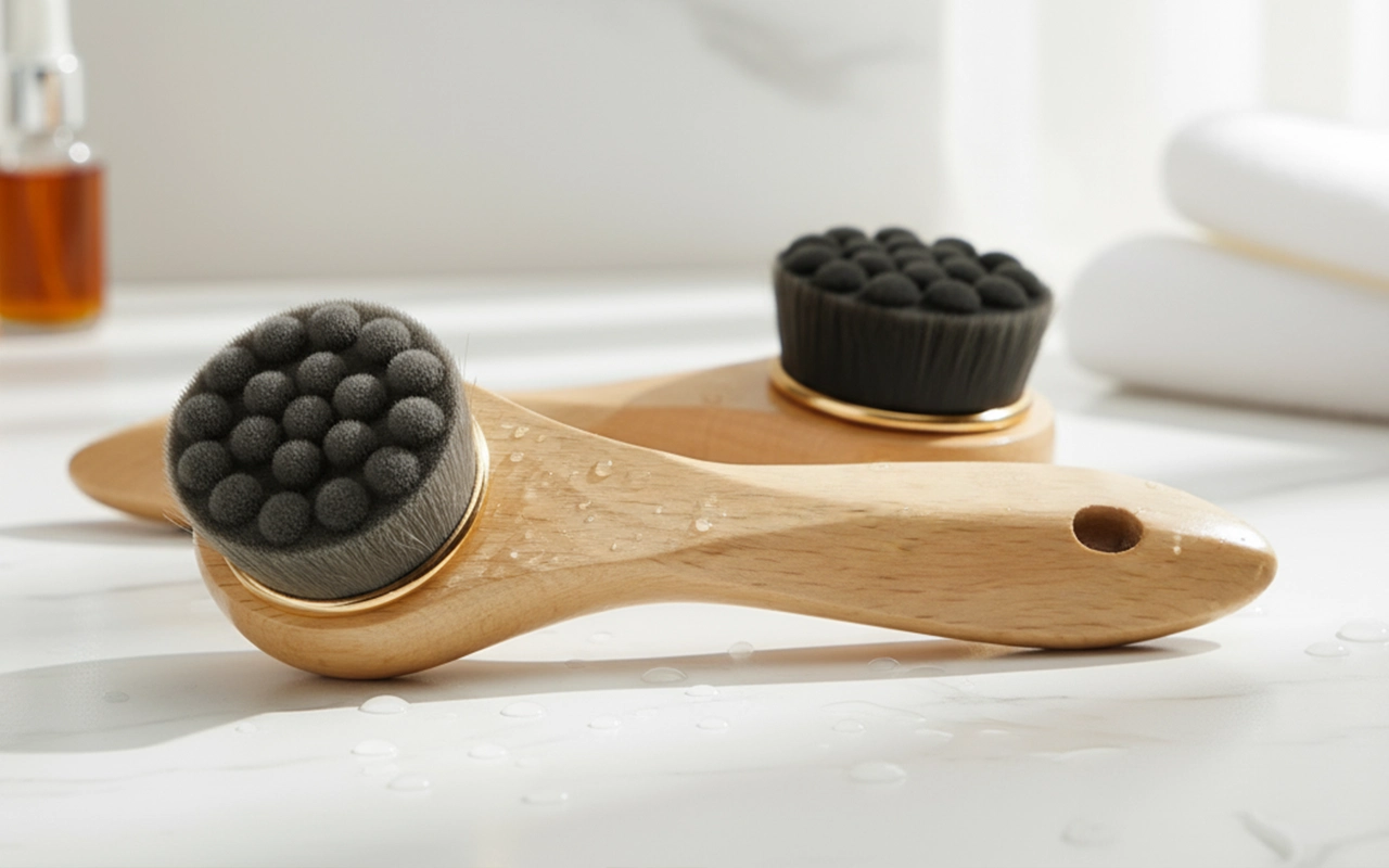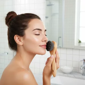 Bambus-Gesichtsbürste zur Tiefenreinigung der Poren mit langem Griff