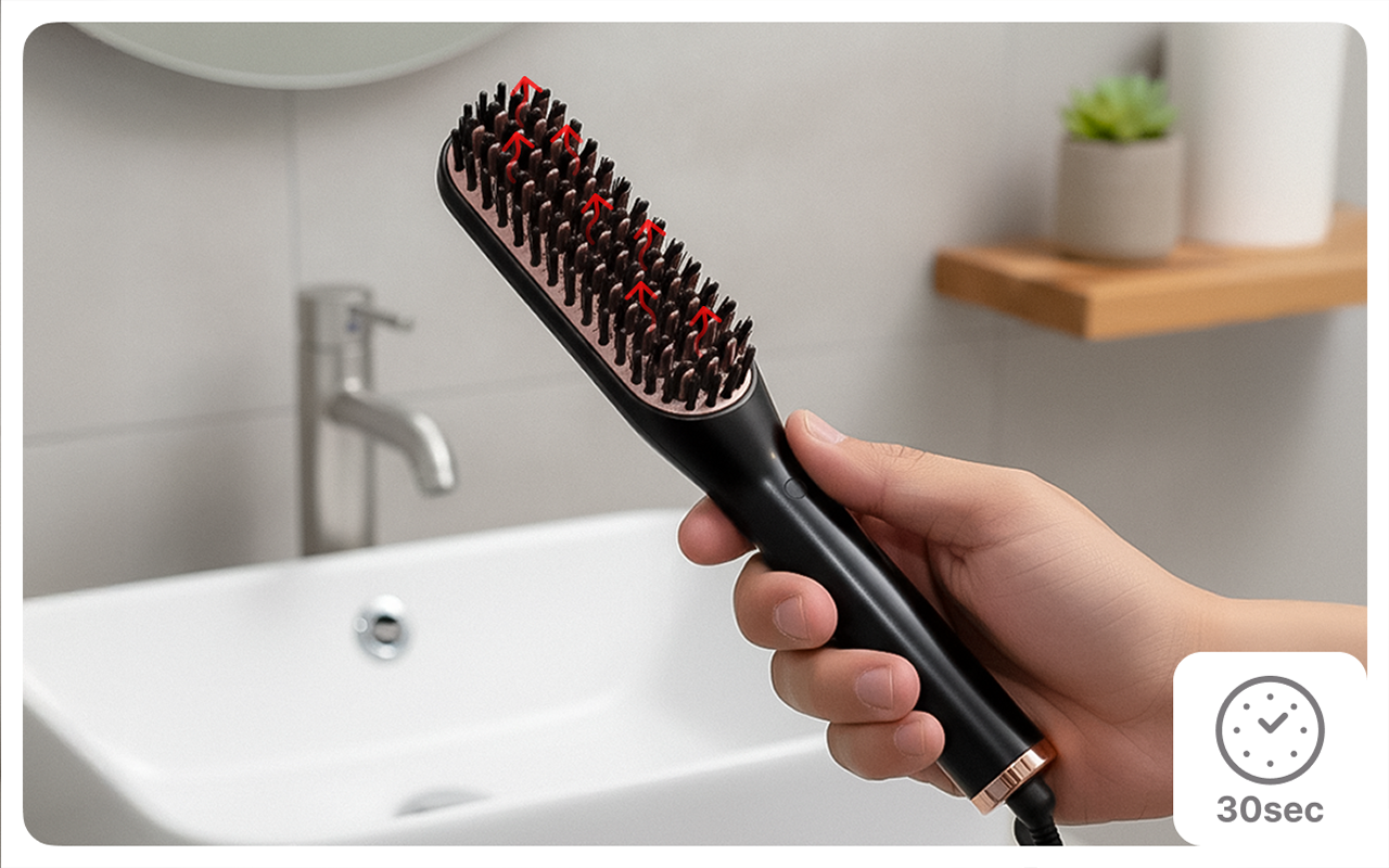 Zähmen Sie widerspenstiges Barthaar ganz einfach mit dem Ortorex-Glätter. Die beheizte Bürste macht hektische Morgen für Vielbeschäftigte einfacher. Sanfte Borsten gleiten über jedes Haar und hinterlassen einen gepflegten, ordentlichen Eindruck. Genießen Sie einen polierten Look, der den ganzen Tag über Selbstvertrauen schenkt.