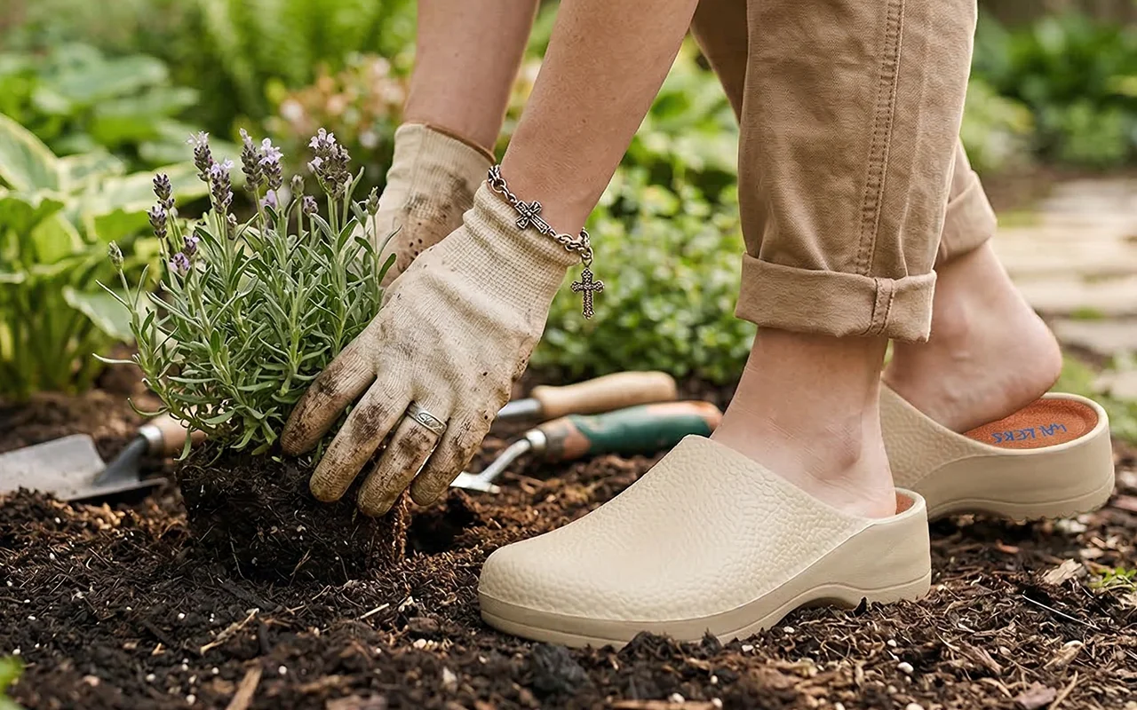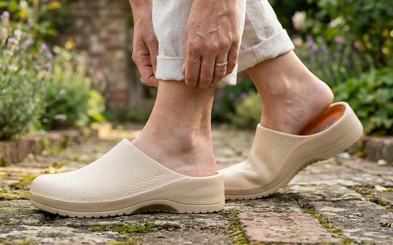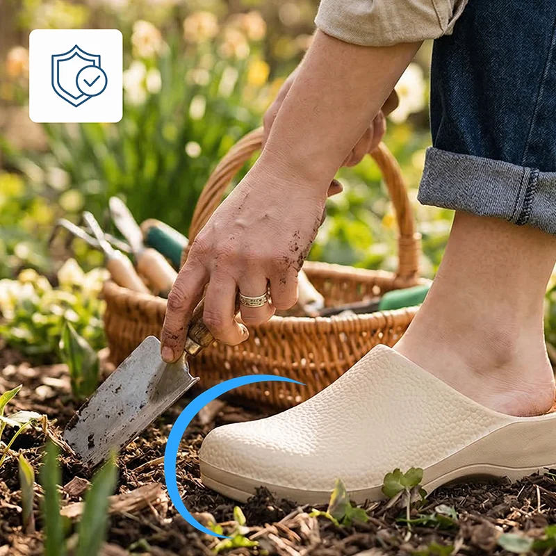 Das stützende Design entlastet müde Fußgewölbe. Weiches Futter reduziert Schmerzen, sodass Sie länger im Garten oder bei der Arbeit stehen können.