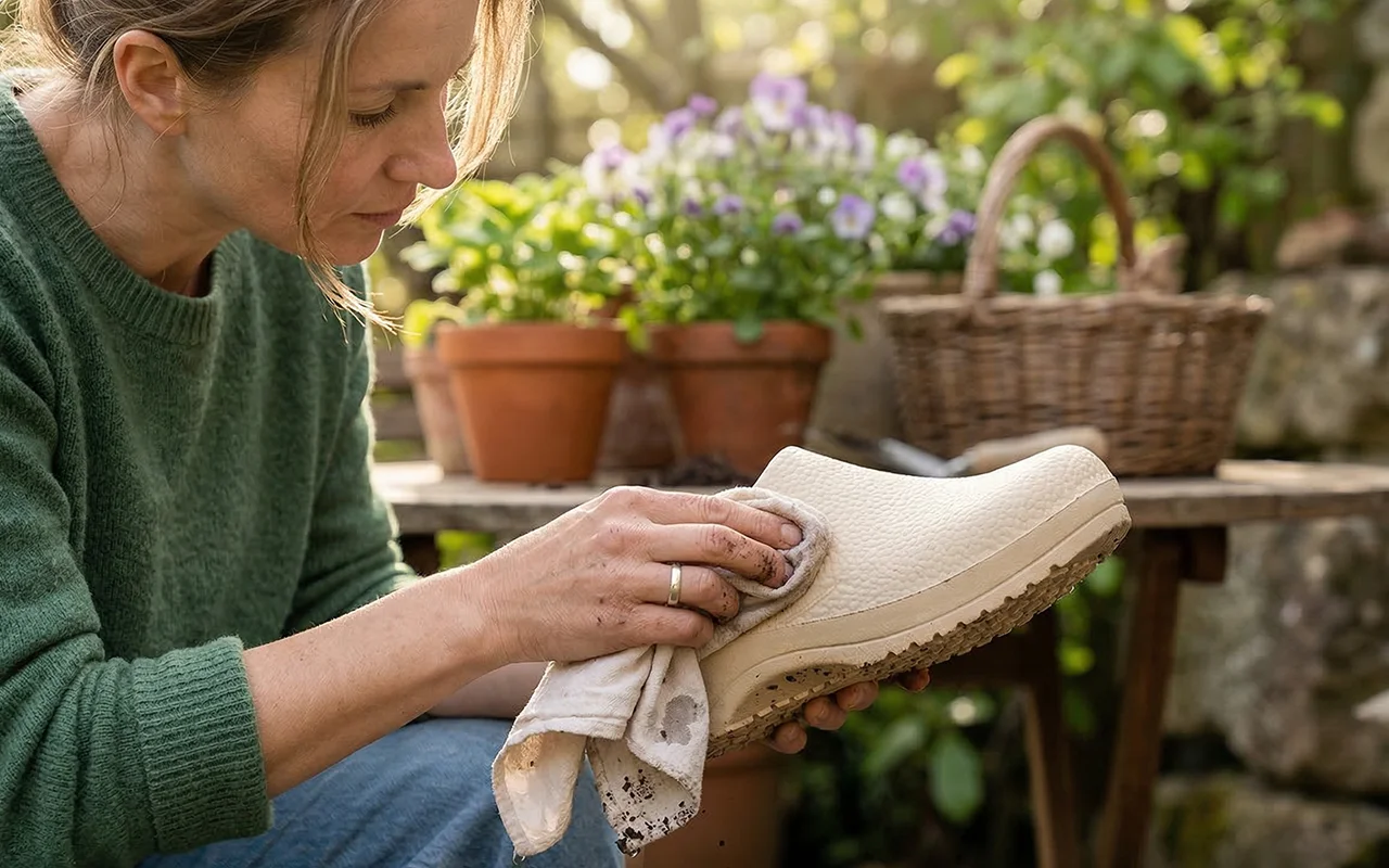 Praktische Slipper für die Gartenarbeit, leicht und robust.