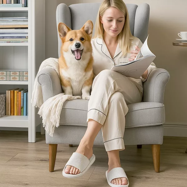 Ich kann sie den ganzen Tag tragen, ohne dass meine Füße riechen. Die Luftzirkulation ist super, und sogar der Gang zum Briefkasten draußen ist dank der stabilen Sohle einfach.