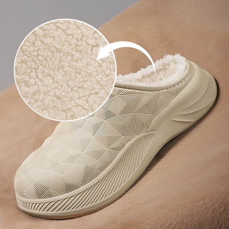 Dicke Sohle absorbiert Stöße und dämpft jeden Schritt. Bewegen Sie sich im Haus stabil und geschützt.