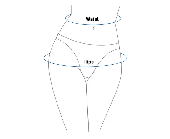- 2. Legen Sie das Maßband um die schmalste Stelle Ihrer Taille und die breiteste Stelle Ihrer Hüften.