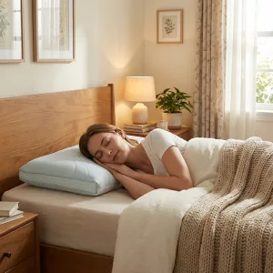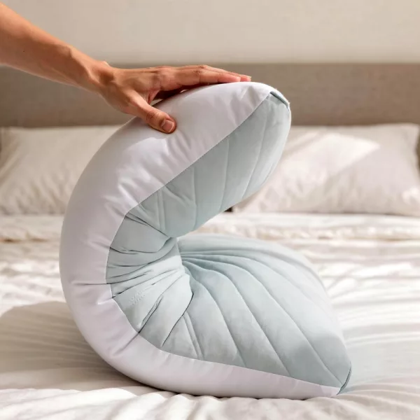 Ich bewege mich nachts viel und wechsle oft die Seite. Die Form fängt meinen Kopf ab, egal wo ich lande, und der kühle Bezug verhindert, dass sich Schweiß staut.