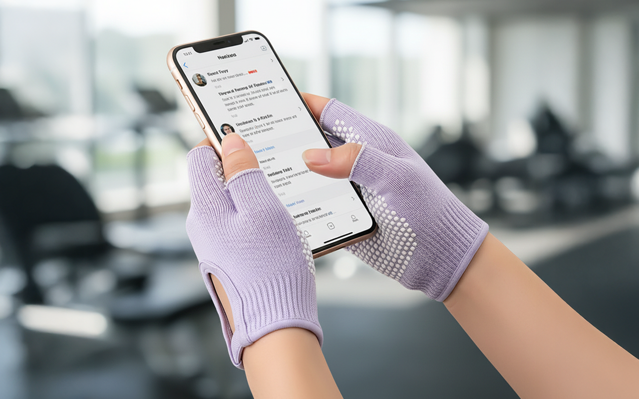 Silikonpunkte der Handfläche festen Halt bei jeder Bewegung. Du bleibst beim Yoga, Pilates oder Radfahren ohne Rutschen stabil.