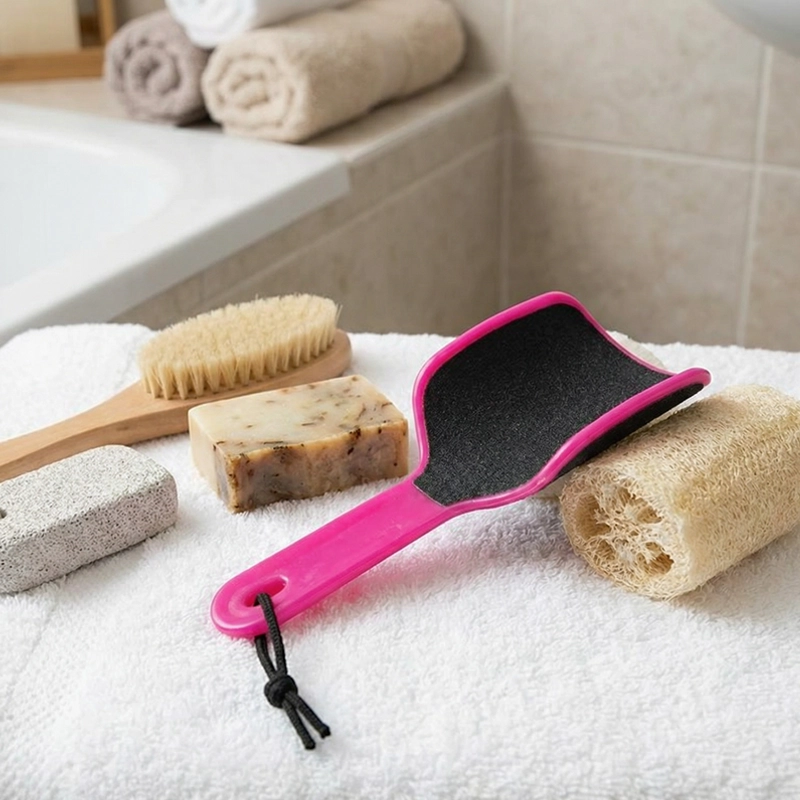 Unser Fußschrubber bietet eine individuelle und effektive Fußpflege. Eine Seite entfernt dicke Hornhaut schnell, während die andere für ein glattes Finish poliert.