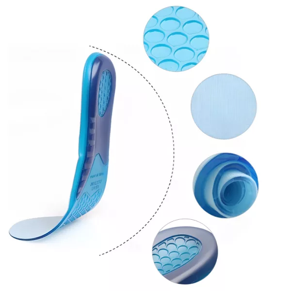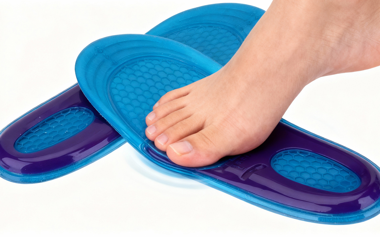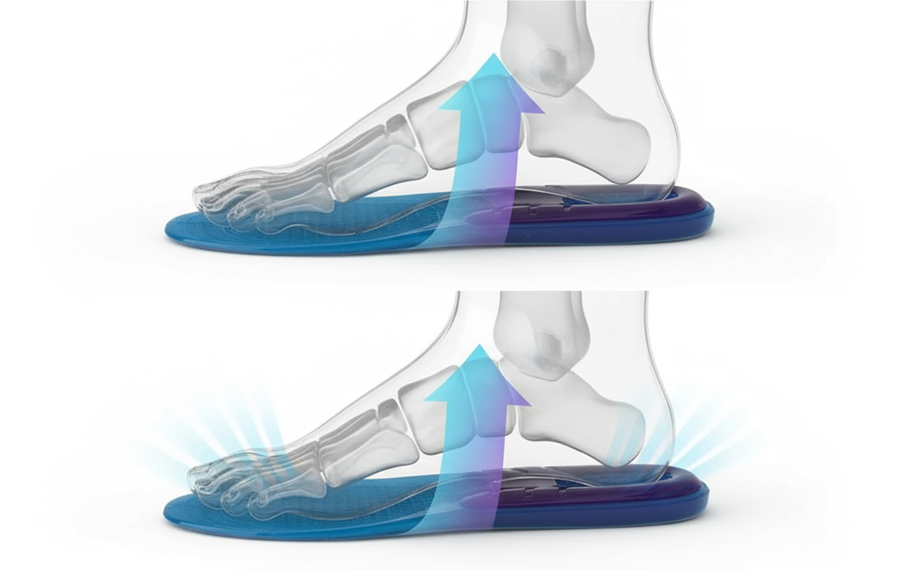 Dicke Silikongel-Polster dämpfen jeden Schritt. Gelenke und Fersen bleiben geschützt, wodurch die tägliche Belastung reduziert wird.