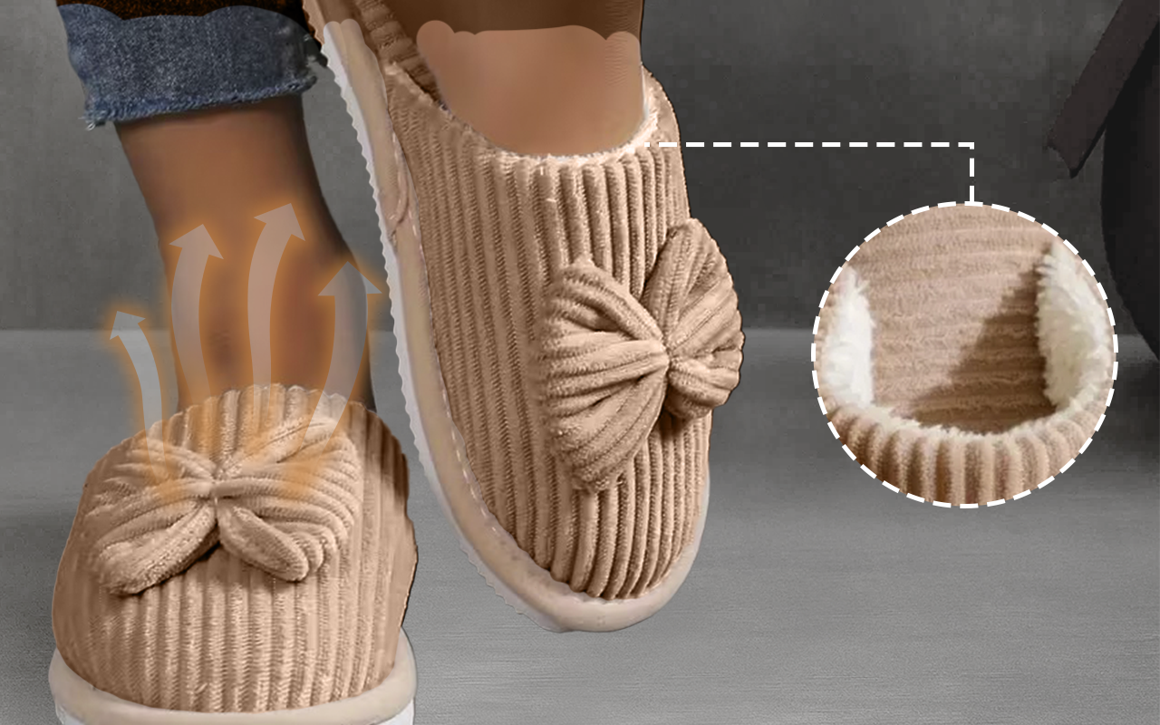 Ich kann gar nicht glauben, wie warm die sind! Ich trage sie vom Moment, in dem ich nach Hause komme, bis zum Schlafengehen. Die Schleife ist ein witziges Detail.