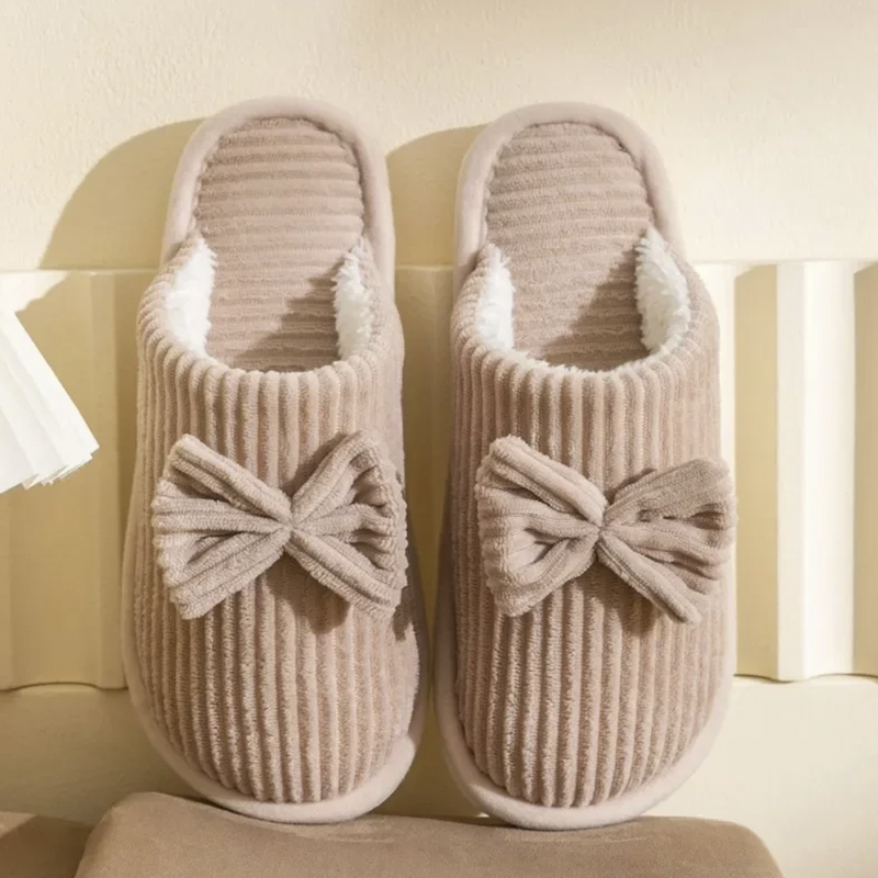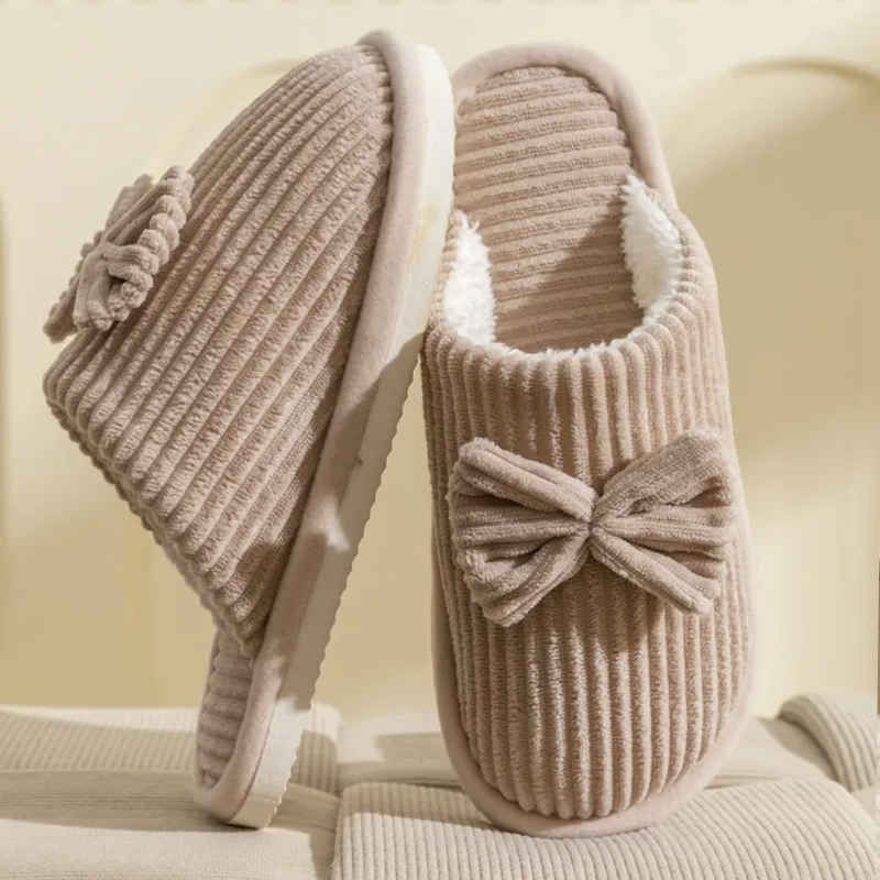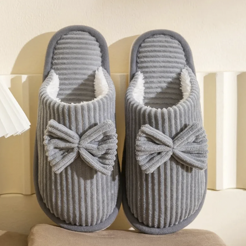 Ich kann gar nicht glauben, wie warm die sind! Ich trage sie vom Moment, in dem ich nach Hause komme, bis zum Schlafengehen. Die Schleife ist ein witziges Detail.