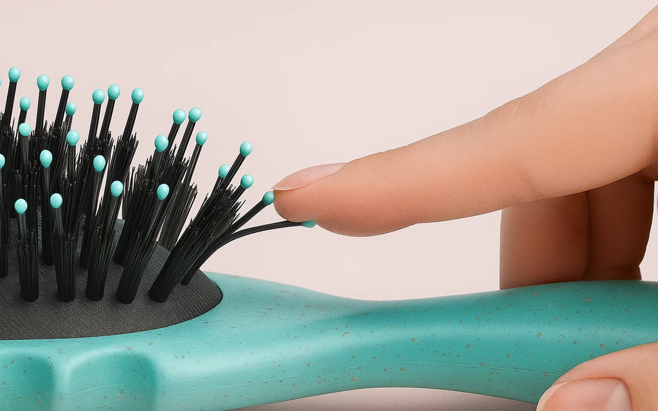 Die Borsten sind sanft und tun meiner Kopfhaut nicht weh. Ich mag, wie einfach sie zu reinigen ist und der Griff liegt gut in der Hand.