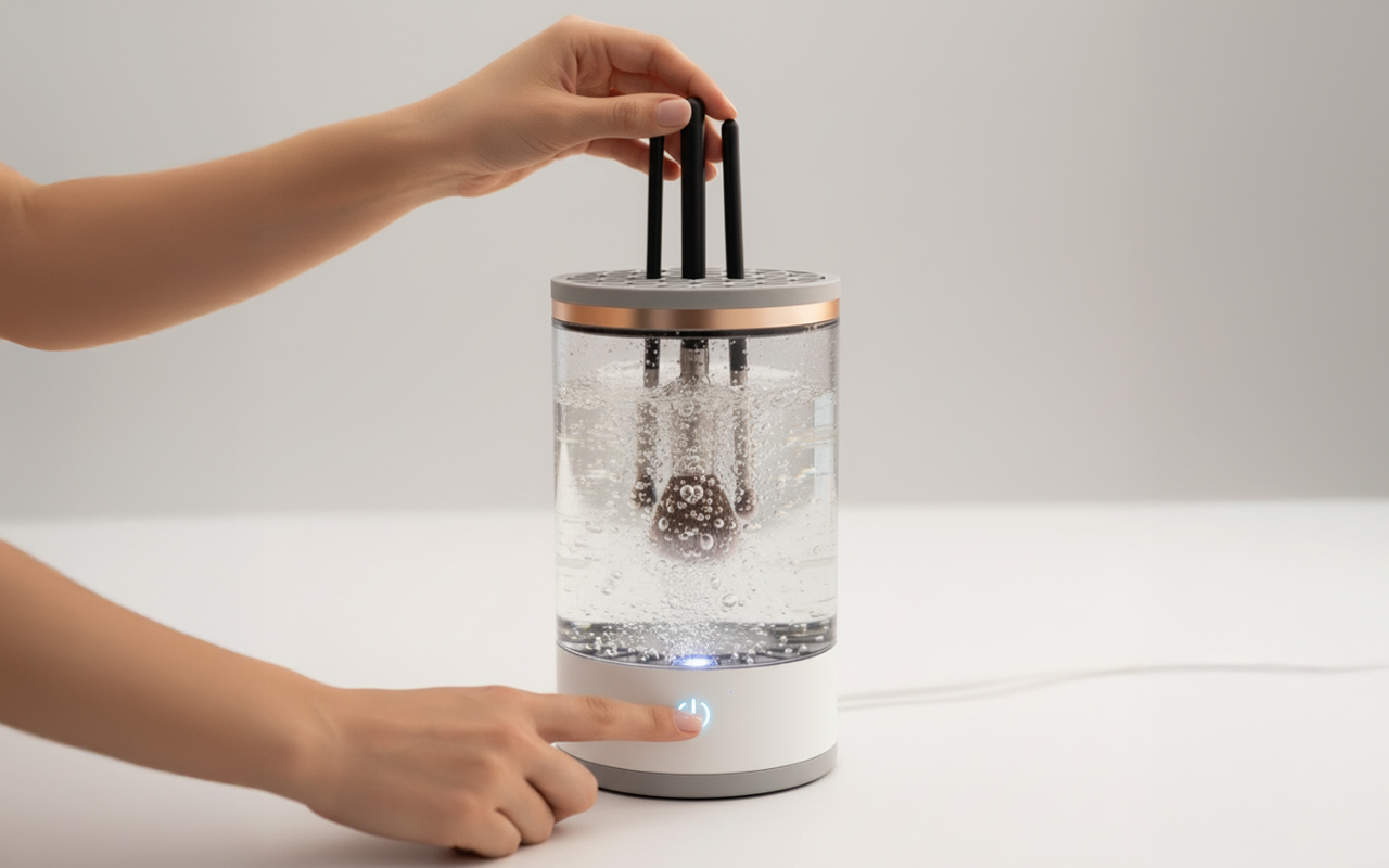 Früher habe ich das Waschen der Pinsel vermieden, weil es ewig gedauert hat. Jetzt drücke ich einfach auf einen Knopf und sehe zu, wie sie sauber werden. So schnell und macht sogar Spaß.