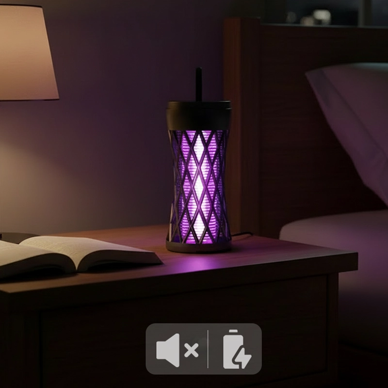 Mein Mann und ich benutzen diese Lampe in unserem kleinen Schlafzimmer in der Wohnung, und das leise Summen und das dunkle Licht halten alles ruhig und insektenfrei.