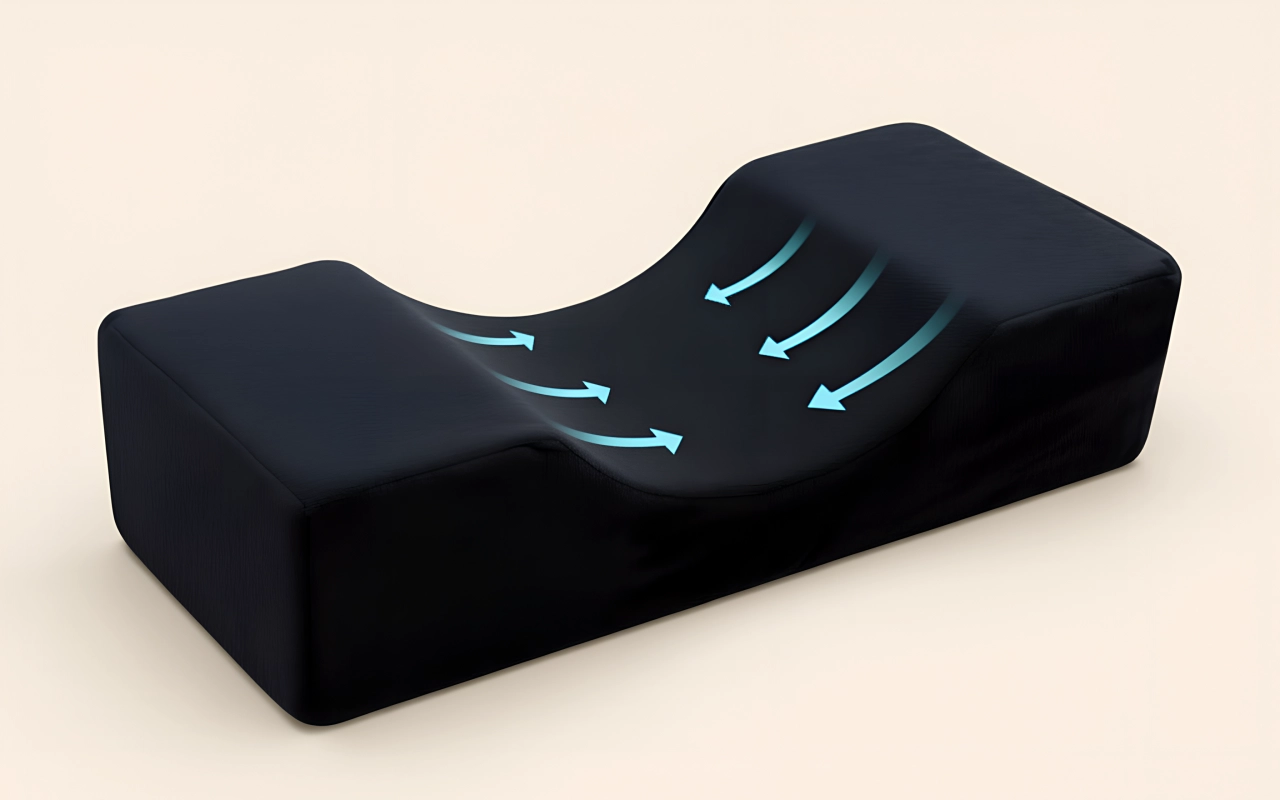 Die einzigartige konkave Form folgt der natürlichen Krümmung Ihres Nackens. Dieses Design reduziert Schmerzen und hält Ihren Kopf in der richtigen Position.