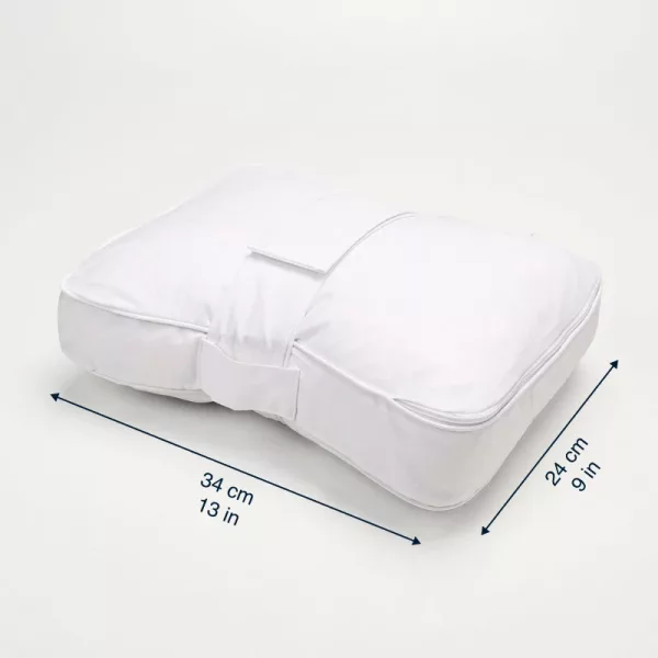 Der abnehmbare Bezug kann problemlos zu Hause in jeder Maschine gewaschen werden. Der verstellbare Gurt hält alles sicher an Ort und Stelle für ruhige Nächte.