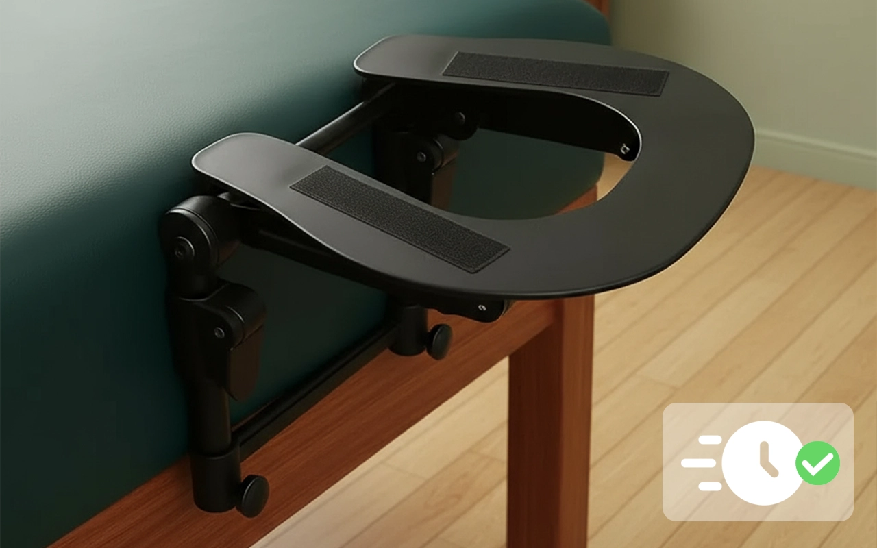 Stecken Sie die Halterung mit einem einfachen Schnallendesign ein. Die Montage dauert nur wenige Sekunden und spart Zeit vor jedem Termin.
