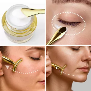 Sanfte Massage hilft, stumpfe Haut unter den Augen aufzuhellen. Jede Anwendung glättet müde Gesichtszüge für ein frischeres Aussehen.