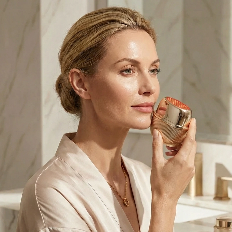 LED-Lichter helfen dabei, blasse Töne zu mildern und den Glow zu stärken. Drei Farben der Lichttherapie verleihen müden Gesichtern sofortige Strahlkraft.