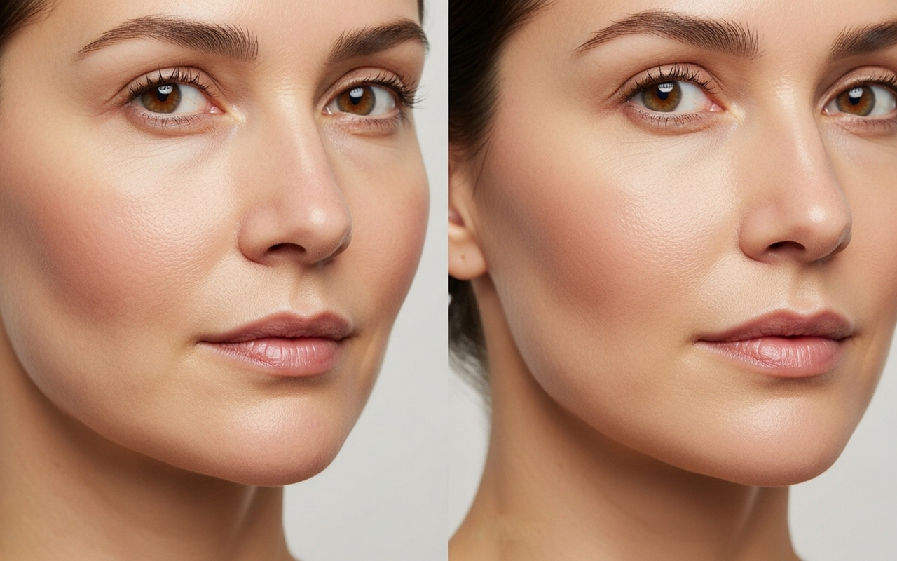 Konturen wirken schon nach wenigen Wochen markanter. Die Kieferlinie erscheint definierter und die Wangen sichtbar straffer.