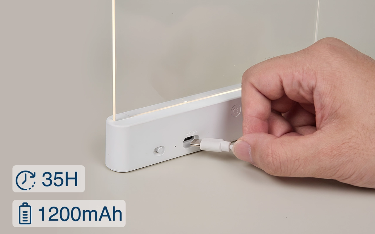 Laden Sie einmal auf und verwenden Sie es viele Nächte hintereinander. Ein zuverlässiger Akku bedeutet keine plötzliche Dunkelheit oder Unterbrechungen Ihrer Geschichten.