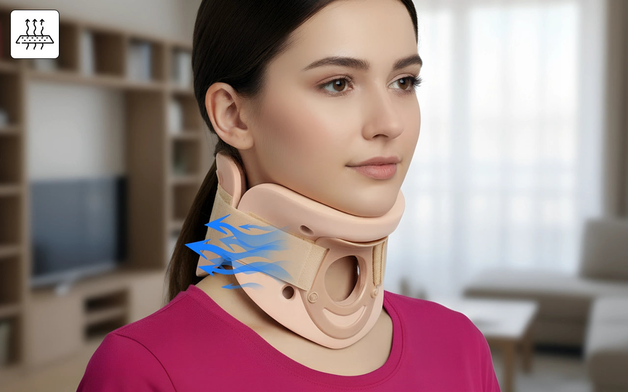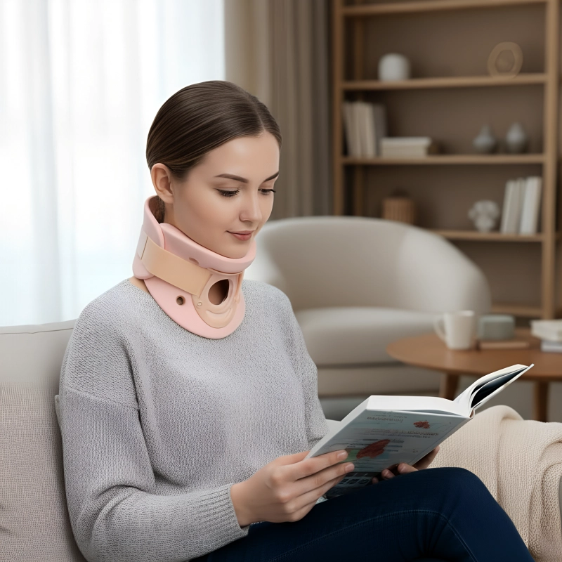 Mein Chiropraktiker hat eine weiche Halsstütze empfohlen, also habe ich diese ausprobiert. Sie lässt sich leicht anpassen, bietet guten Halt und das atmungsaktive Material fühlt sich den ganzen Tag über angenehm an.
