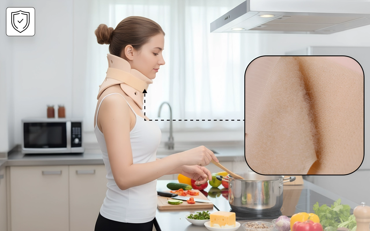 Mit diesem weichen Halskragen nach einer Muskelzerrung wurden alltägliche Hausarbeiten leichter. Mir gefällt die gleichmäßige Unterstützung und dass der Stoff keine Wärme um meinen Nacken staut.