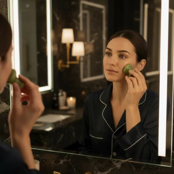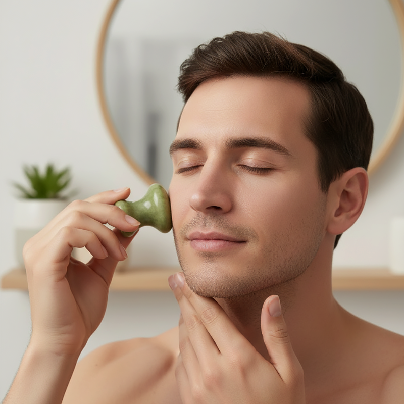 Das Gua-Sha-Tool hilft wirklich, morgens mein Gesicht zu entspannen. Super einfach, und ich kann meinen Kiefer und meine Wangen deutlicher sehen. Sogar mein Bruder nutzt es manchmal.