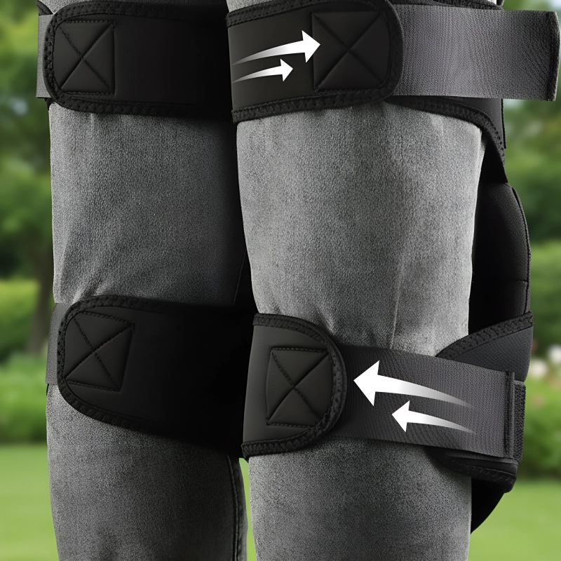 Einfache Riemen lassen sich in Sekunden auf jede Beinweite einstellen. Die Auflagen bleiben sicher an Ort und Stelle, sodass Sie sich schnell bewegen können, ohne zu verrutschen.