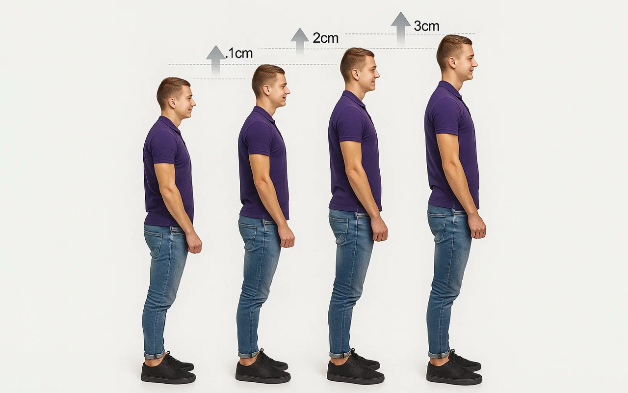 Erhöhen Sie Ihre Körpergröße, ohne dass es jemand bemerkt oder Sie sich unwohl fühlen. Jeder Einsatz verschmilzt nahtlos mit den meisten Schuhen und verleiht einen natürlichen Auftrieb.
