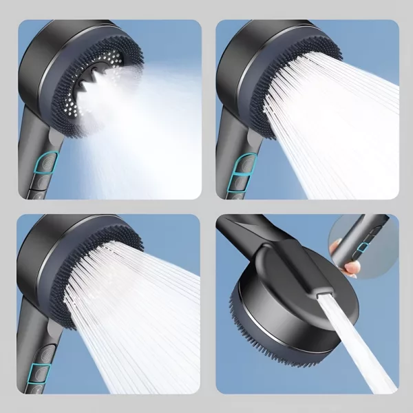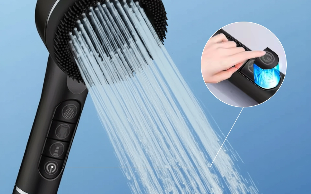 Mit der Silikonbürste lässt sich Seifenablagerung leicht entfernen. Duschen fühlt sich jetzt wie ein tägliches Verwöhnprogramm an. Der Insta-Stopp-Knopf ist sehr praktisch.