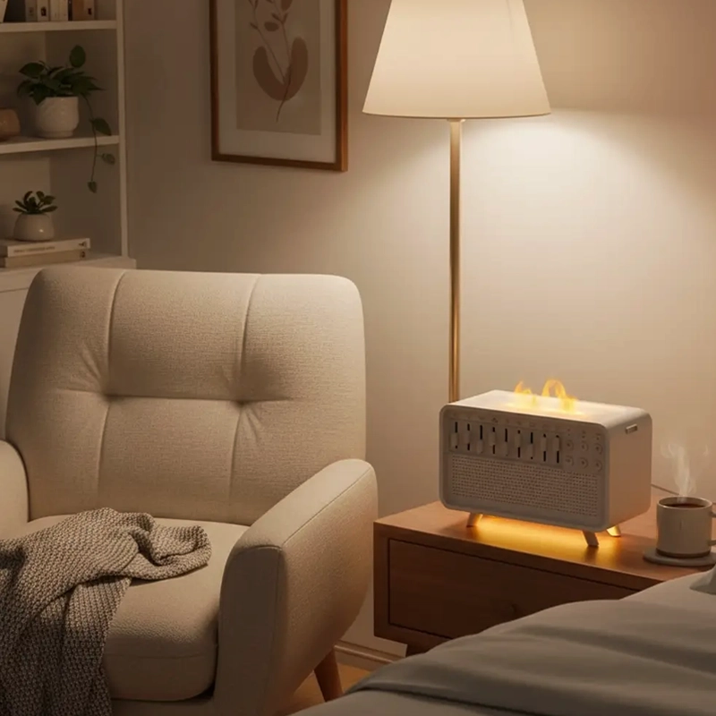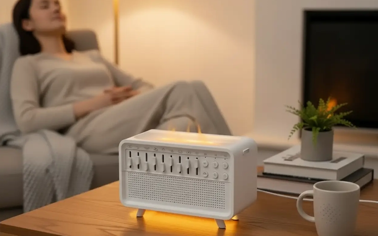Verwandeln Sie das Zubettgehen jeden Abend in eine friedliche Auszeit. Die Ortorex Luftbefeuchter-Soundmaschine bringt schnell Ruhe in unruhige Köpfe. Genießen Sie beruhigende Klänge, sanften Nebel und weiches Licht für totale Entspannung. Wachen Sie erfrischt auf, bereit für alles.