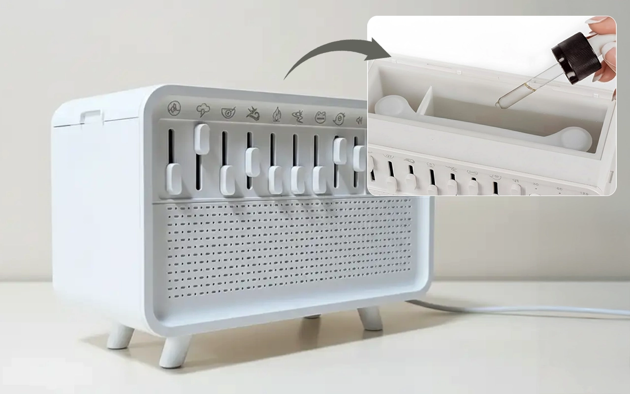 Ich liebe es, aus den Naturgeräuschen auszuwählen! Das sanfte Regengeräusch mit meinem Lieblingsöl lässt mein Zimmer sofort ruhig und friedlich wirken.