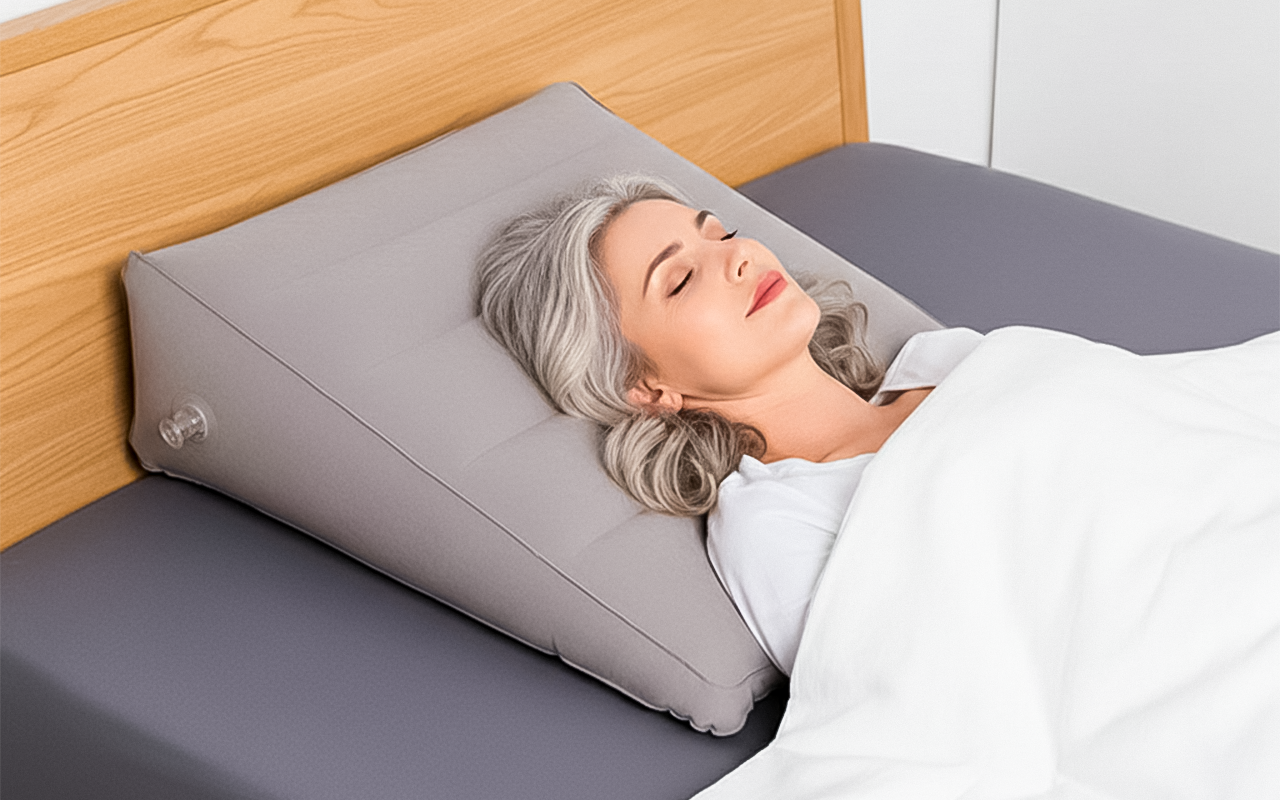 Genießen Sie wohltuende Entlastung beim Lesen, Schlafen oder Entspannen zu Hause. Das kompakte Design passt problemlos in jede Tasche für unterwegs. Bei Bedarf mühelos aufpumpen, dann schnell entleeren und verstauen. Das Ortorex-Keilkissen sorgt überall für Komfort.