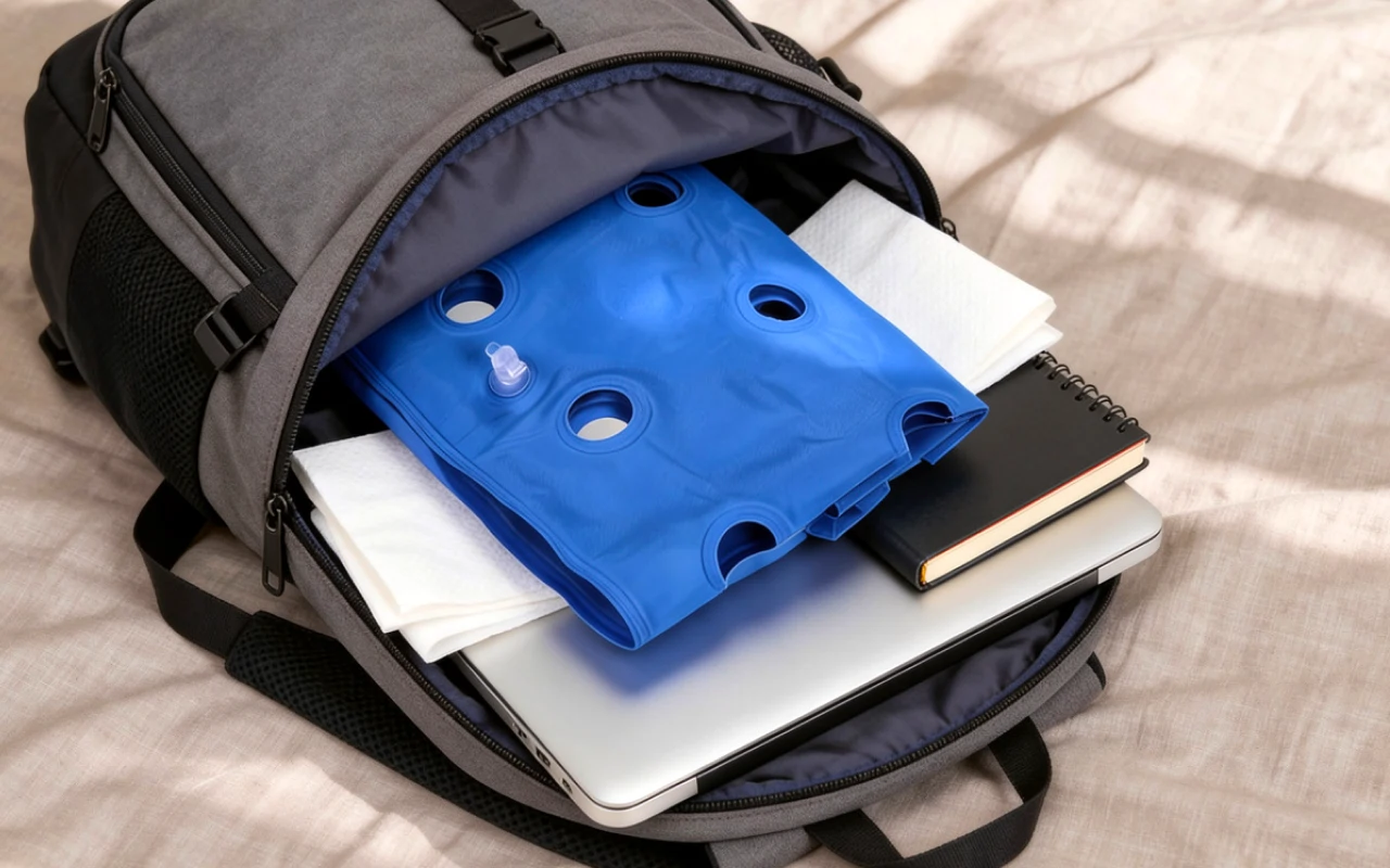 Nehmen Sie Ihr Ortorex Kissen überallhin mit, vom Büro bis auf Reisen. Es lässt sich schnell entleeren und einfach überallhin mitnehmen.