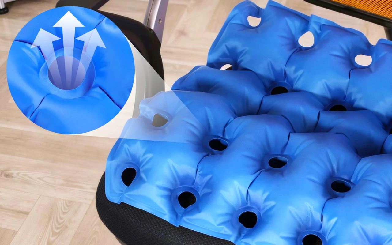 Die einzigartigen Löcher sorgen für Luftzirkulation unter Ihrem Körper. Genießen Sie ein kühles, trockenes Gefühl, selbst nach Stunden am Schreibtisch.